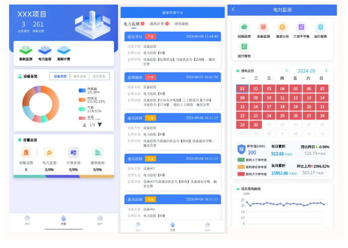 智慧能源管理移動端包括APP和小程序(公眾號),項目管理人員可以通過手機APP查詢各類能耗用量明細和能耗告警,實現設備監測、控制和運維等功能,終端用戶可以通過小程序(公眾號)實現余額充值、賬戶管理、用量查詢、賬單查詢功能。